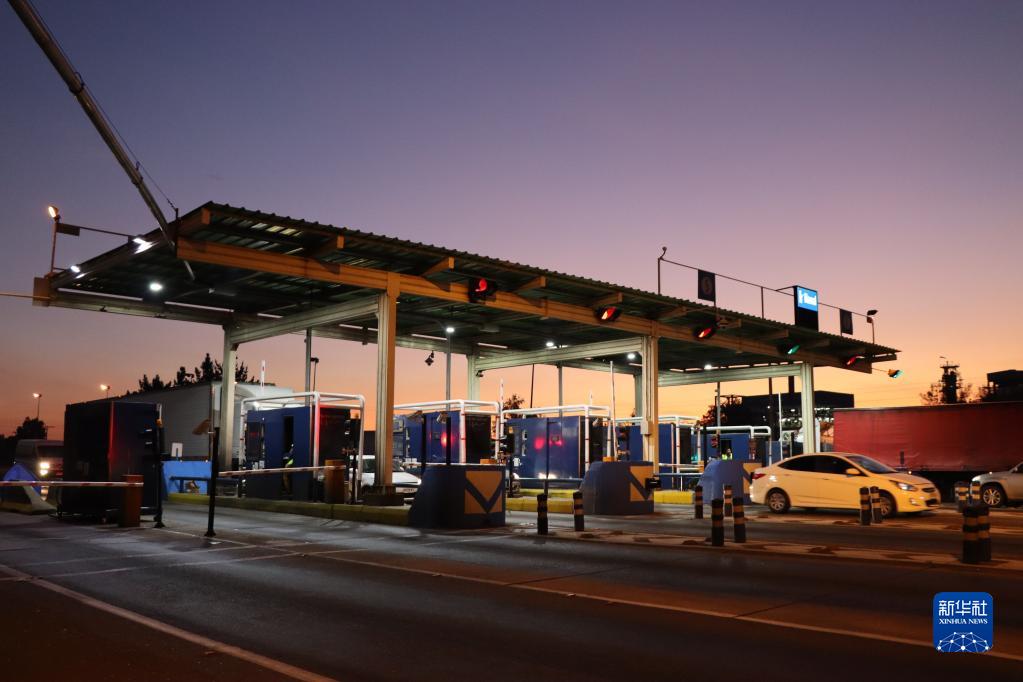 這是2月14日晚拍攝的位于智利比奧比奧大區的5號公路圣克拉拉主收費站。