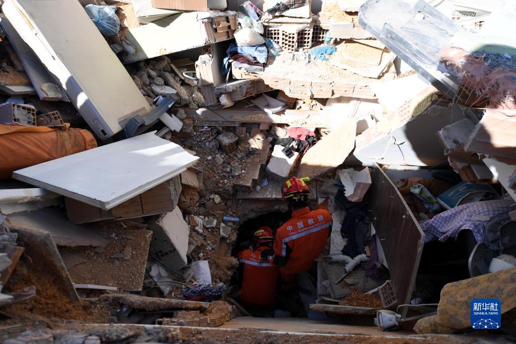 2月9日,中國救援隊隊員在土耳其哈塔伊省安塔基亞市開(kāi)展救援工作。