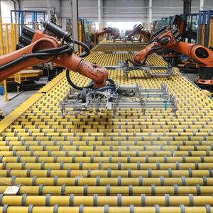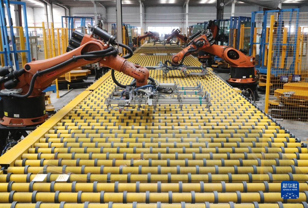 2月17日,秦皇島一家玻璃企業(yè)的機器手在工作中。