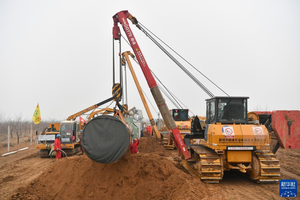 2月16日,施工人員在位于陜西省咸陽(yáng)市禮泉縣的西氣東輸三線(xiàn)工程陜西段管道鋪設施工現場(chǎng)作業(yè)。