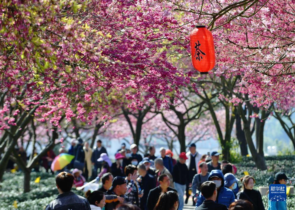 近日,福建省漳平市永福鎮臺品櫻花茶園里的櫻花迎來(lái)最佳賞花期,吸引眾多游客觀(guān)賞。