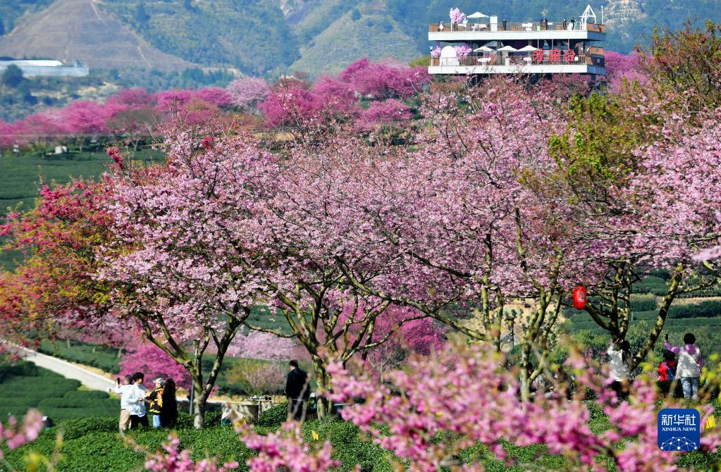 近日,福建省漳平市永福鎮臺品櫻花茶園里的櫻花迎來(lái)最佳賞花期,吸引眾多游客觀(guān)賞。