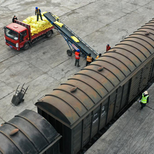 2月17日,工作人員在蘭州貨運中心金昌鐵路貨場(chǎng)內進(jìn)行化肥卸車(chē)作業(yè)。