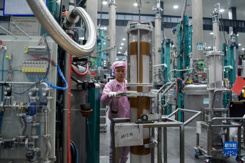 2月17日,在烏海市京運通新材料科技有限公司,工人在生產(chǎn)車(chē)間作業(yè)。