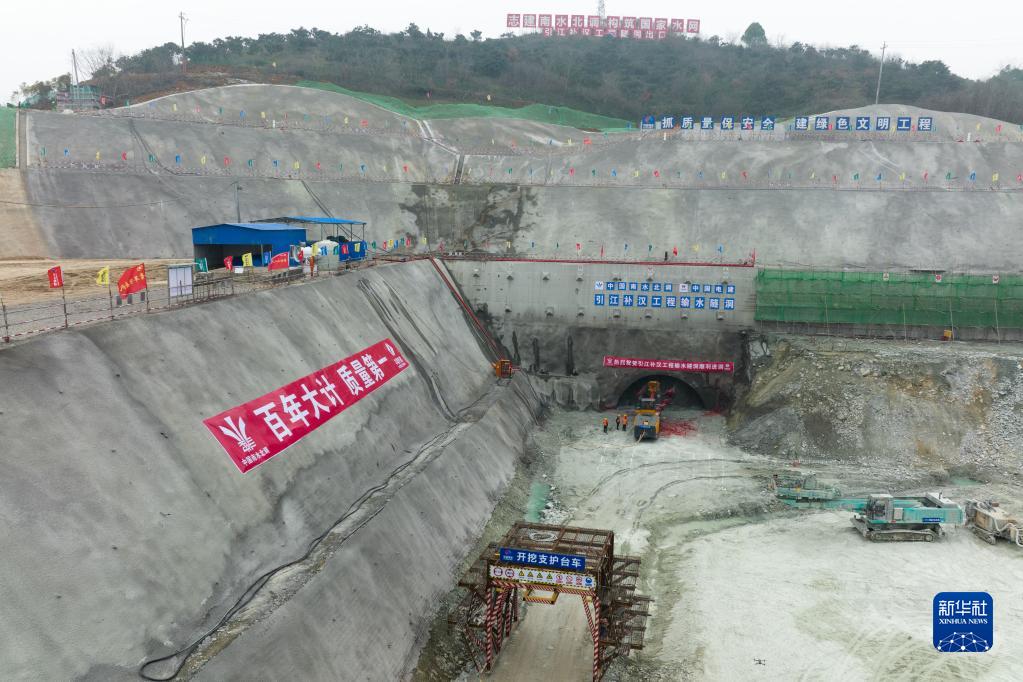 當日,隨著(zhù)多臂鑿巖臺車(chē)在引江補漢工程輸水總干線(xiàn)出口處啟動(dòng)鉆孔施工,南水北調后續工程首個(gè)開(kāi)工項目——引江補漢工程正式進(jìn)入主體隧洞施工階段。