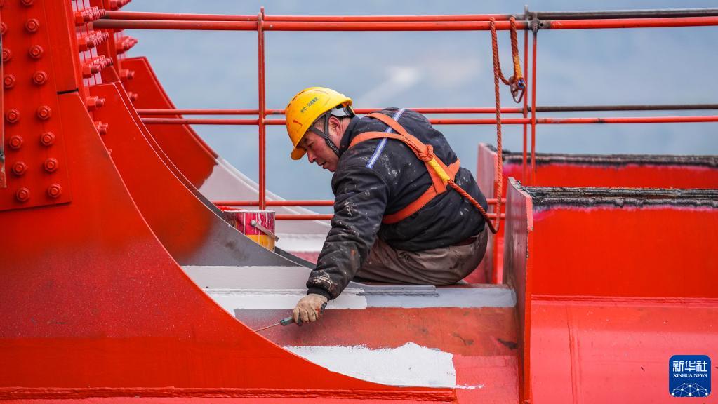 中交一公局工人在德余高速烏江特大橋進(jìn)行施工(2月16日攝)。