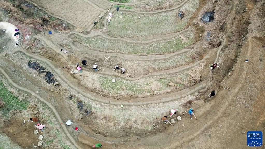 時(shí)值春耕備耕時(shí)節,湖南省新化縣水車(chē)鎮紫鵲界村村民們抓緊時(shí)間修整紫鵲界梯田,為農忙做準備。