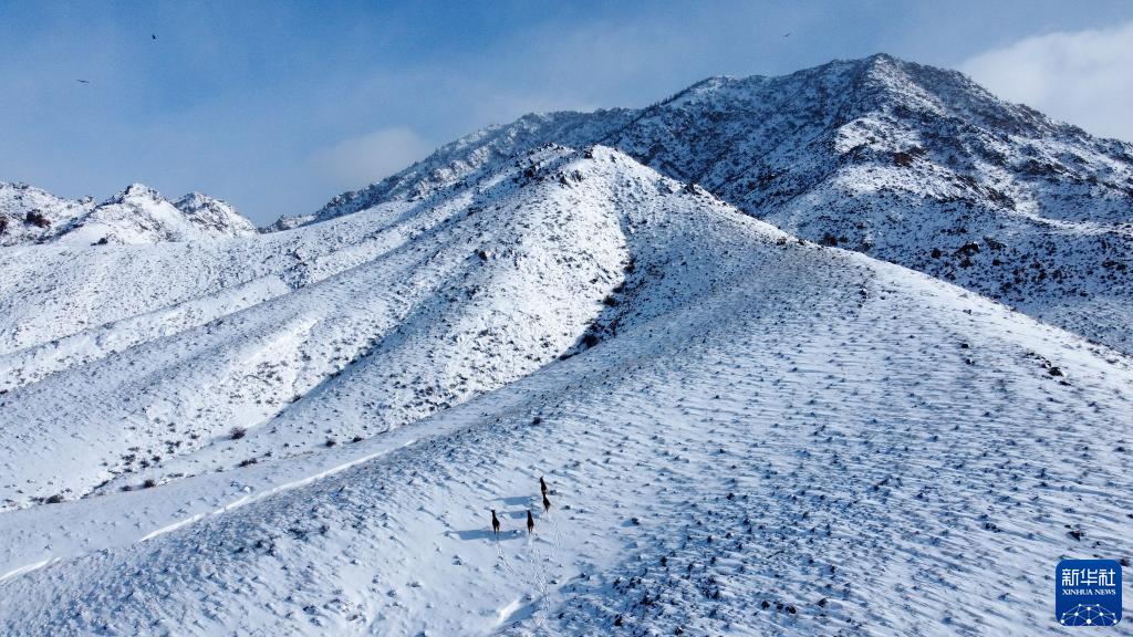 2月18日在內蒙古賀蘭山國家級自然保護區內拍攝的馬鹿(無(wú)人機照片)。