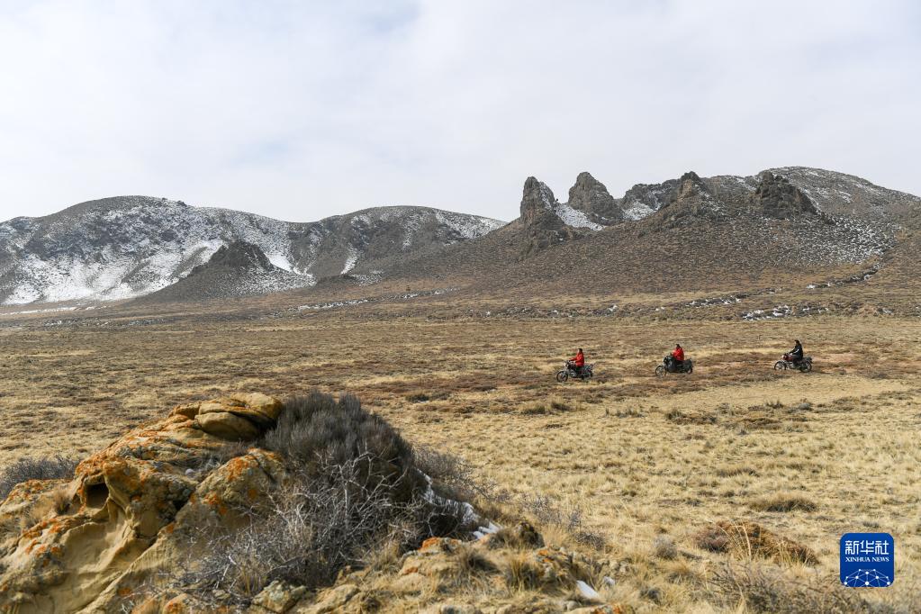 2月17日,哈拉烏管理站門(mén)洞子管護站的管護員駕駛摩托車(chē)在保護區內巡護。