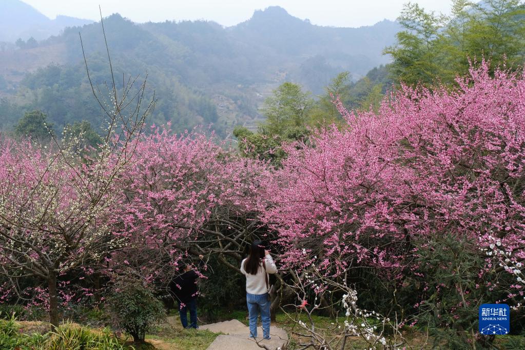 當日是雨水節氣,浙江省諸暨市東白湖鎮斯宅村依山而建的斯舜梅園吸引了不少游客前來(lái)踏春賞梅。該梅園種植近500株梅樹(shù),主要有紅梅、白梅、垂枝梅、臘梅等10多個(gè)品種的梅花,是當地鄉村旅游的一大特色。