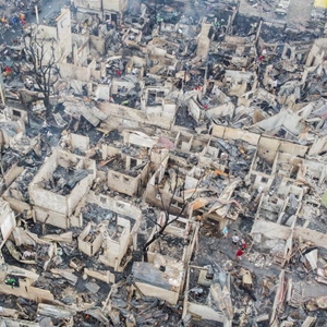 這是2月19日在菲律賓奎松拍攝的被燒毀的房屋(無(wú)人機照片)。