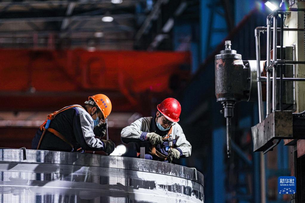 工人在位于遼寧省沈陽(yáng)市的北方重工有限公司車(chē)間加工零部件(1月13日攝)。