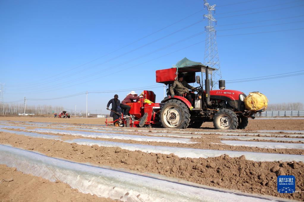 2月19日,山東省聊城市茌平區振興街道大崔村農民駕駛農機播種馬鈴薯。