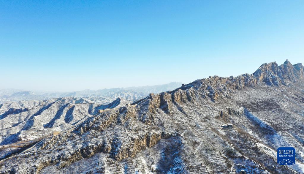 這是2月19日拍攝的雪后初霽的司馬臺長(cháng)城(無(wú)人機照片)。