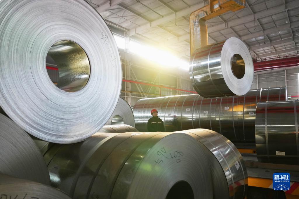 2月19日,工人在唐山市豐南區一家鍍鋅鋼板企業(yè)操作設備吊運鍍鋅鋼板。