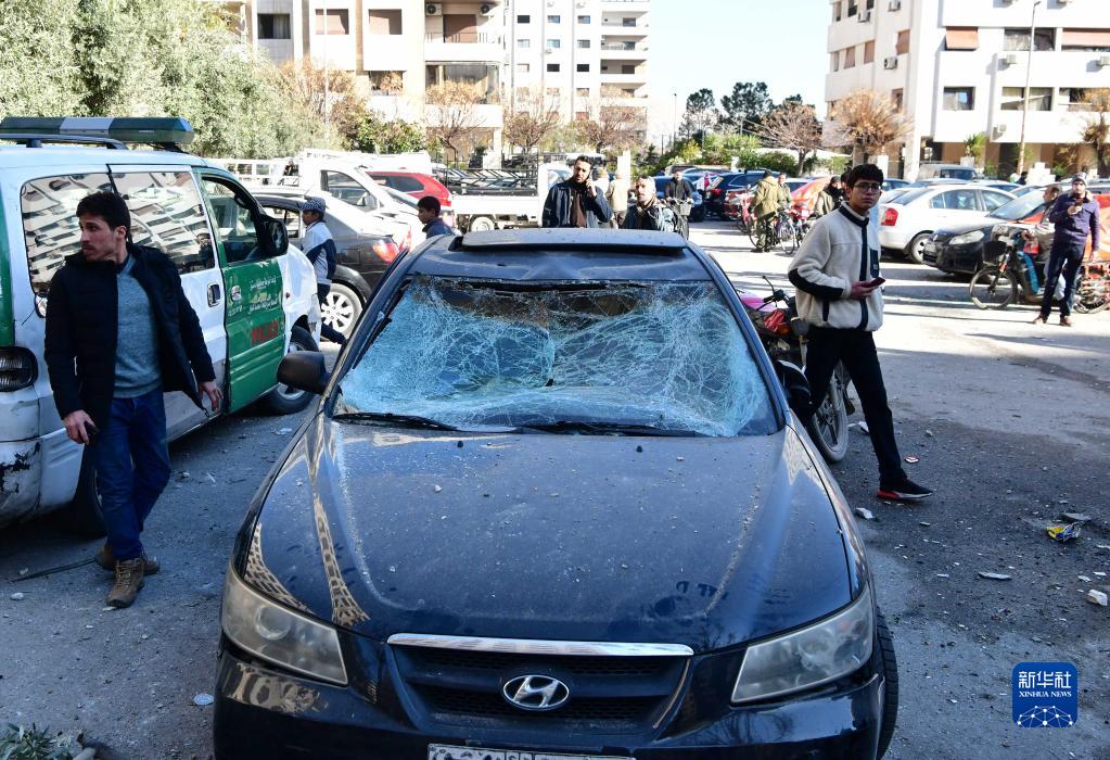 這是2月19日在敘利亞大馬士革拍攝的在導彈襲擊中受損的車(chē)輛。