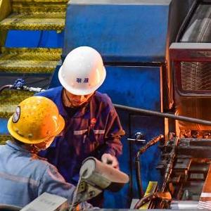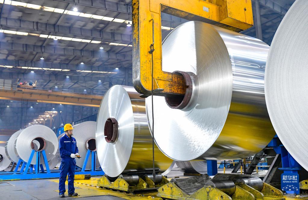 2月19日,在霍林郭勒市一家鋁業(yè)公司,工人在鋁箔生產(chǎn)線(xiàn)上作業(yè)。