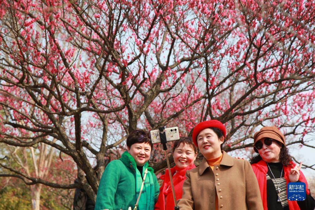 2月19日,人們在江蘇南京梅花山留影。