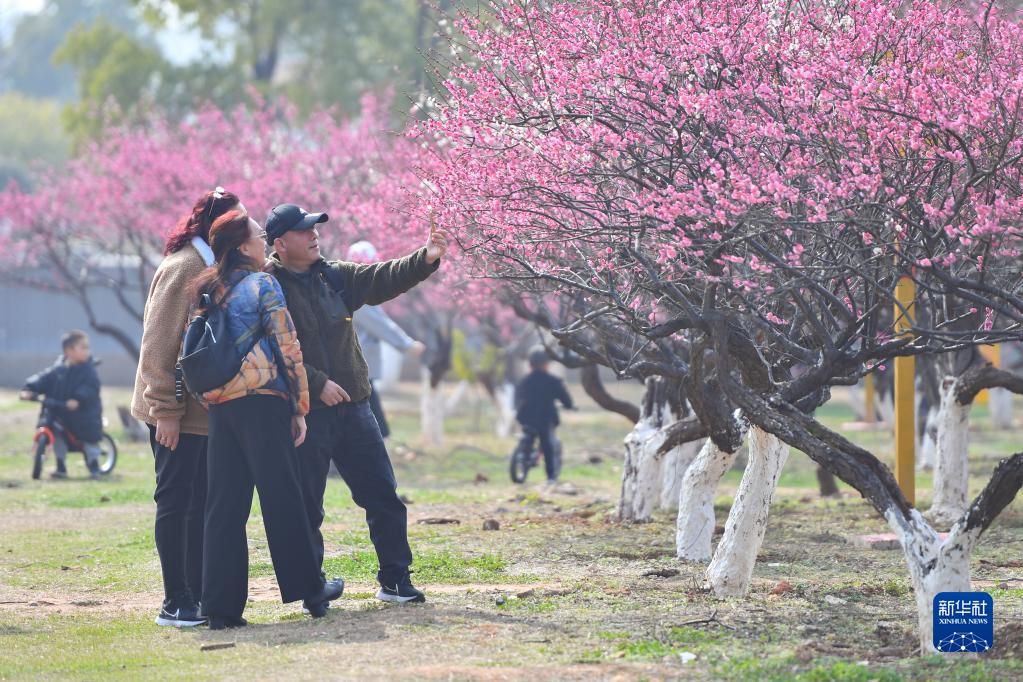 2月20日,游客在位于湖南省長(cháng)沙市長(cháng)沙縣的湖南松雅湖國家濕地公園賞花、拍照。