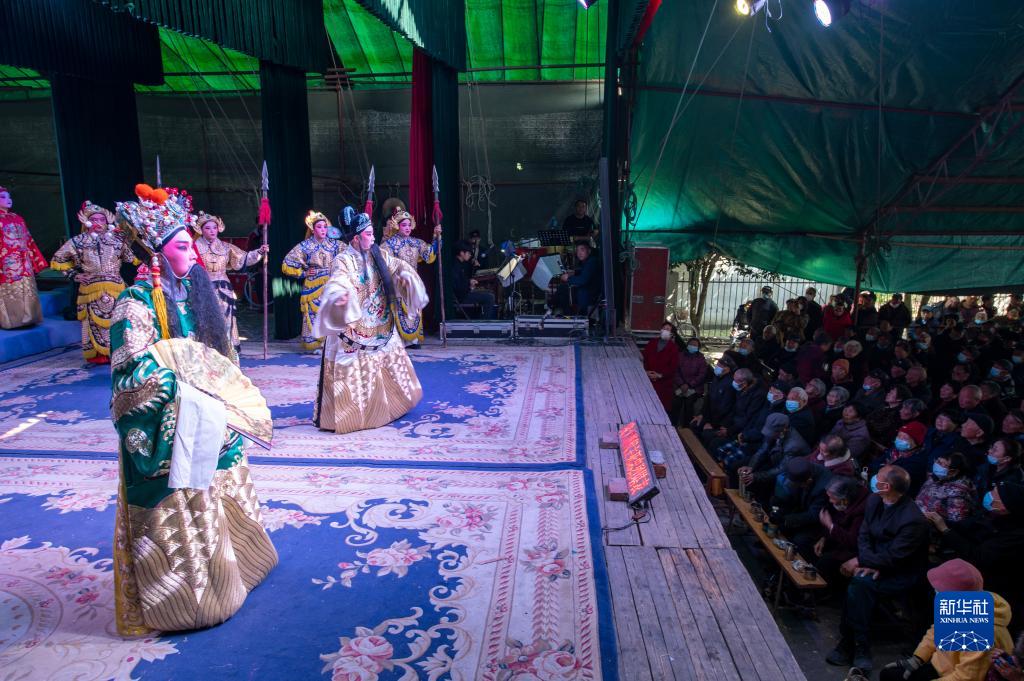 2月20日,在浙江省金華市金東區孝順鎮中街村廣場(chǎng),村民在觀(guān)看婺劇表演。