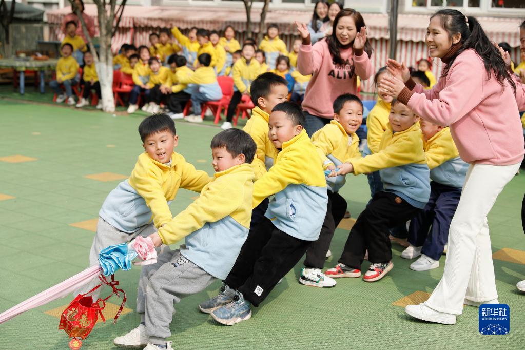 2月20日,江西省吉安市吉州區保育院的孩子們在“二月二 龍抬頭”活動(dòng)上參加拔河比賽。