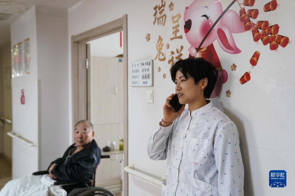 2月14日,在南通常青樂(lè )齡護理院,李楠楠接聽(tīng)市民來(lái)電。