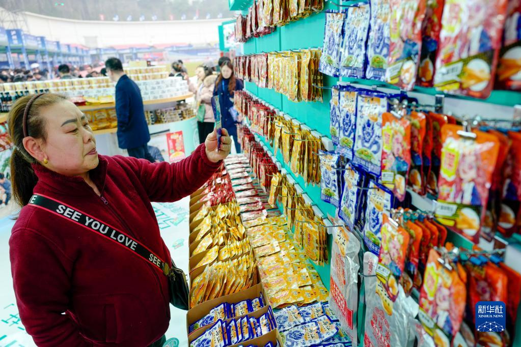 2月20日,在第五屆中國重慶·涪陵榨菜產(chǎn)業(yè)國際博覽會(huì )現場(chǎng),一名觀(guān)眾在選購涪陵榨菜產(chǎn)品。