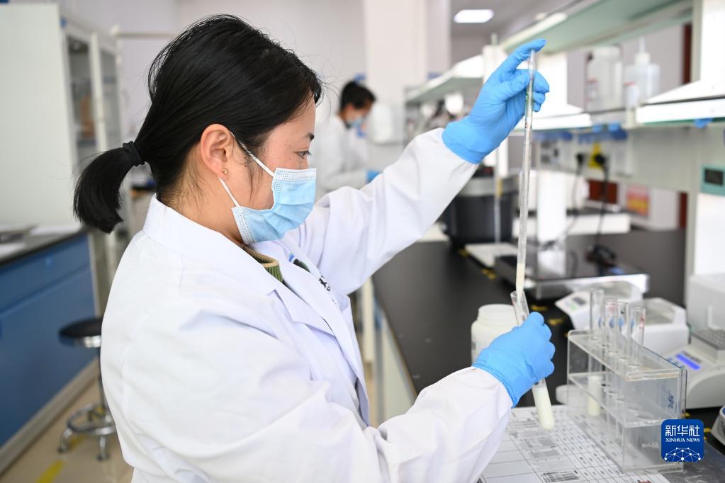 在武威市涼州區一家企業(yè)牧場(chǎng),工作人員檢測鮮奶品質(zhì)(2月18日攝)。