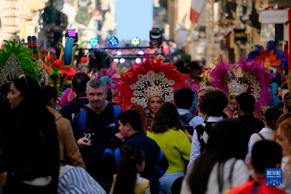 2月20日,在馬耳他瓦萊塔,人們參加狂歡節巡游活動(dòng)。
