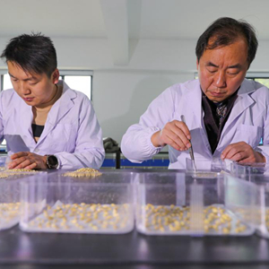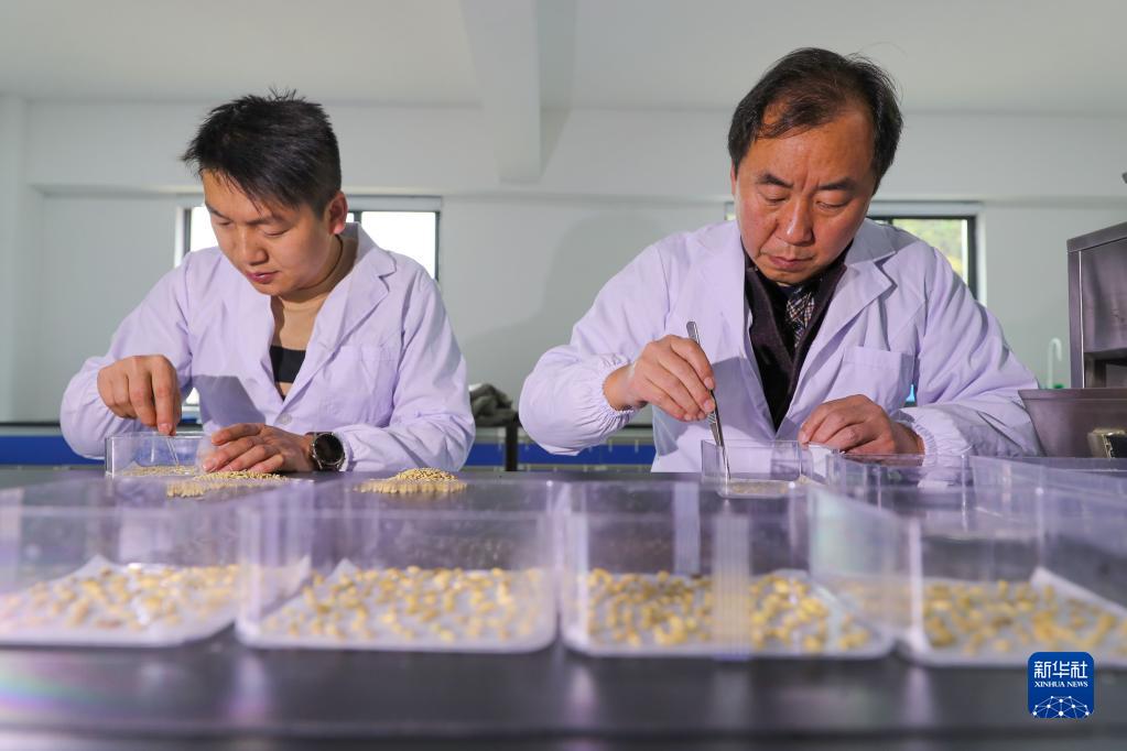 2月20日,技術(shù)員在貴州省黔東南苗族侗族自治州岑鞏縣一家雜交水稻制種公司檢測種子的發(fā)芽率。