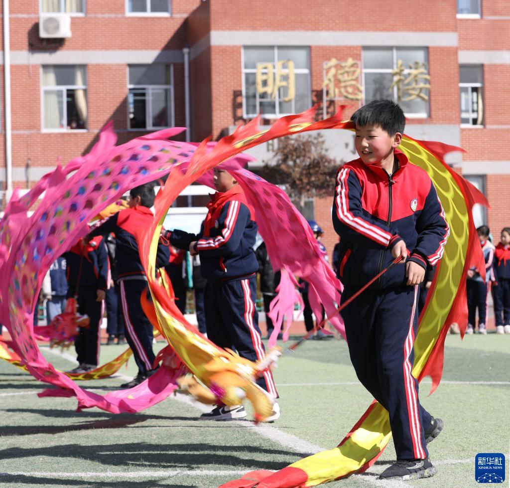 2月21日,山東省臨沂市沂南縣湖頭鎮中心小學(xué)的孩子們在舞龍慶“二月二”。