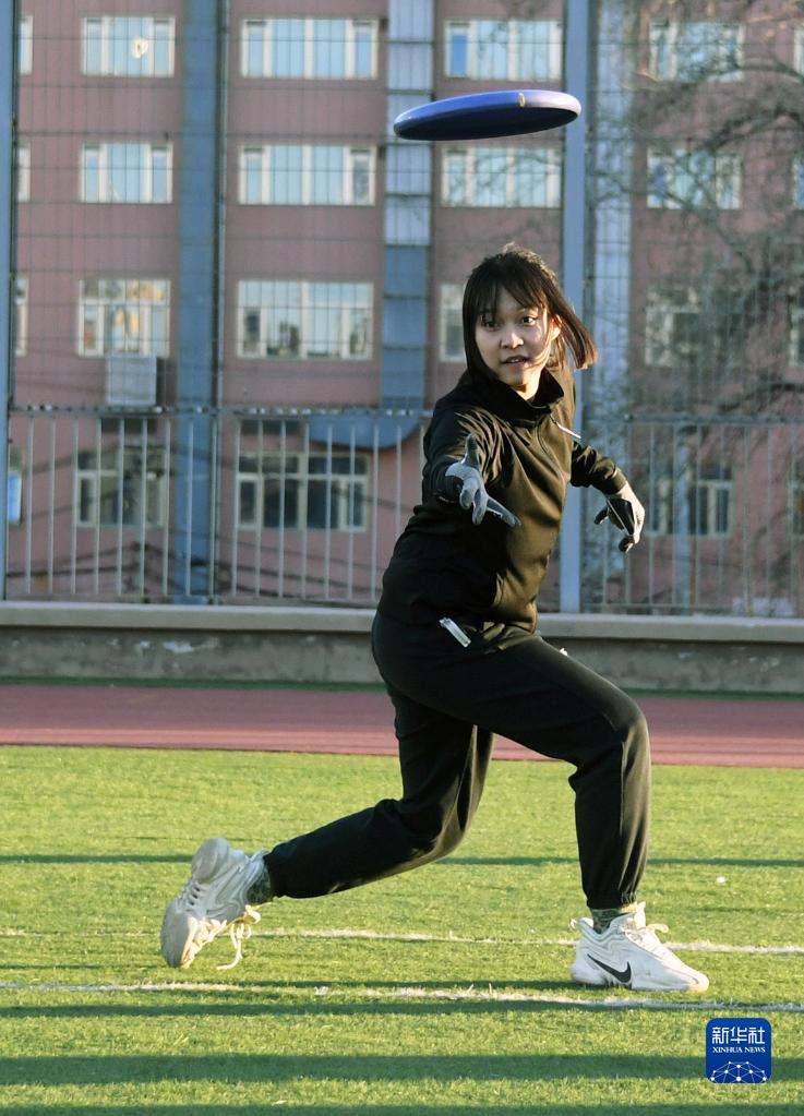 2月20日,在北京大學(xué)附屬中學(xué),學(xué)生在體育課中進(jìn)行極限飛盤(pán)練習。