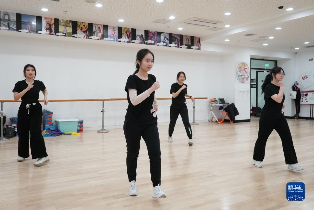 2月20日,在北京大學(xué)附屬中學(xué),學(xué)生在體育課中進(jìn)行健美操練習。