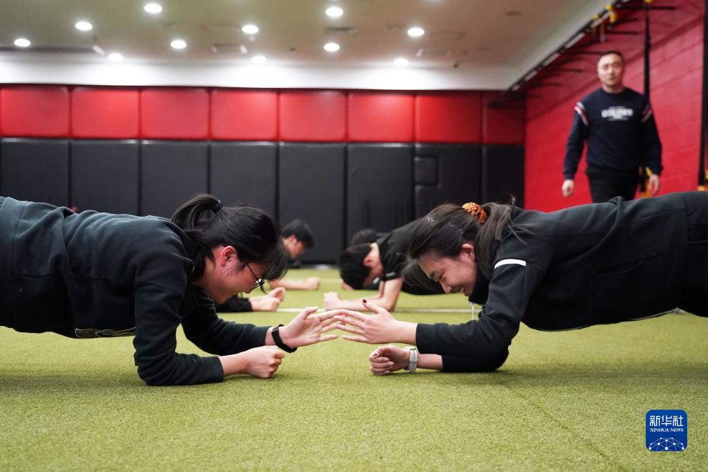 2月20日,在北京大學(xué)附屬中學(xué),學(xué)生在體育課中進(jìn)行平板擊掌練習。