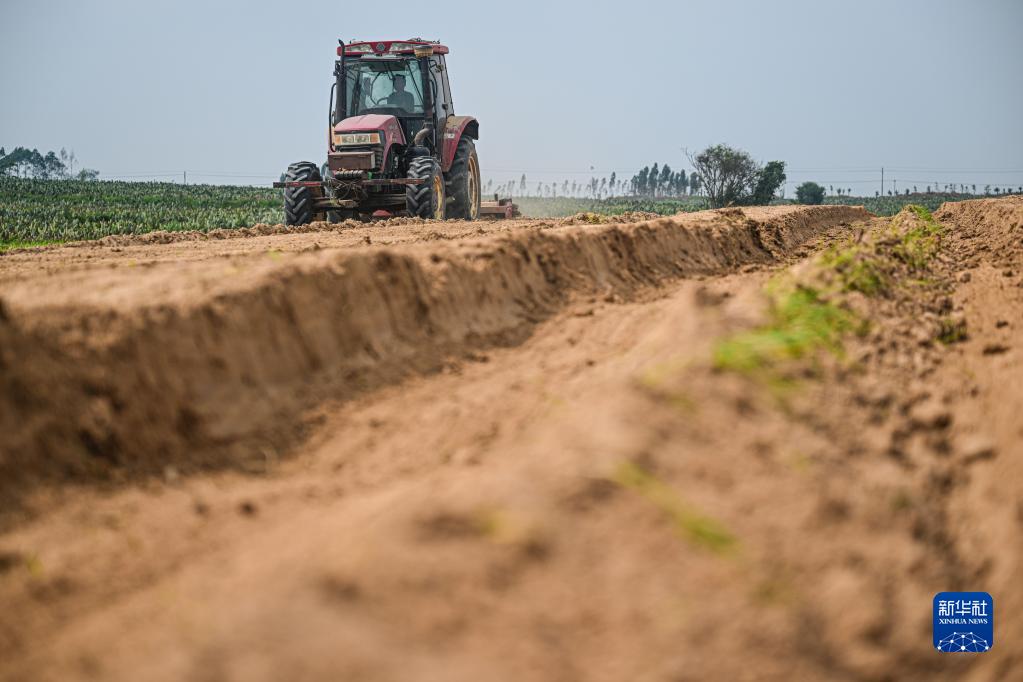 2月20日,在中美墨仙人掌種植基地,工作人員駕駛機械平整土地,為后續種植做準備。