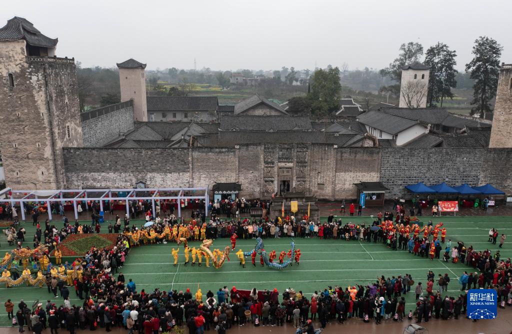 當日,四川省瀘縣在全國重點(diǎn)文物保護單位——屈氏莊園前舉行瀘州市2023年“二月二·龍抬頭”民俗文化展示暨瀘縣首屆“龍文化宣傳日”活動(dòng)。傳統的舞龍活動(dòng)表達人們期盼新的一年風(fēng)調雨順、五谷豐登。