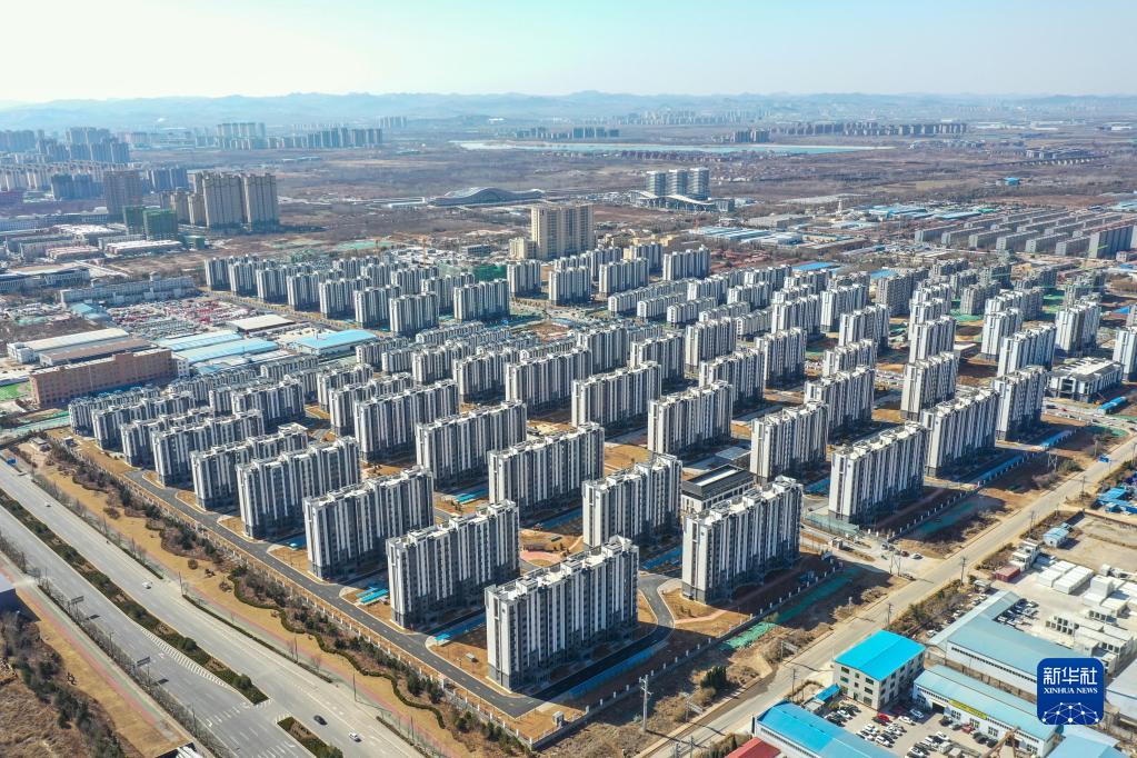 2月21日拍攝的首批交付的安置房新居(無(wú)人機照片)。