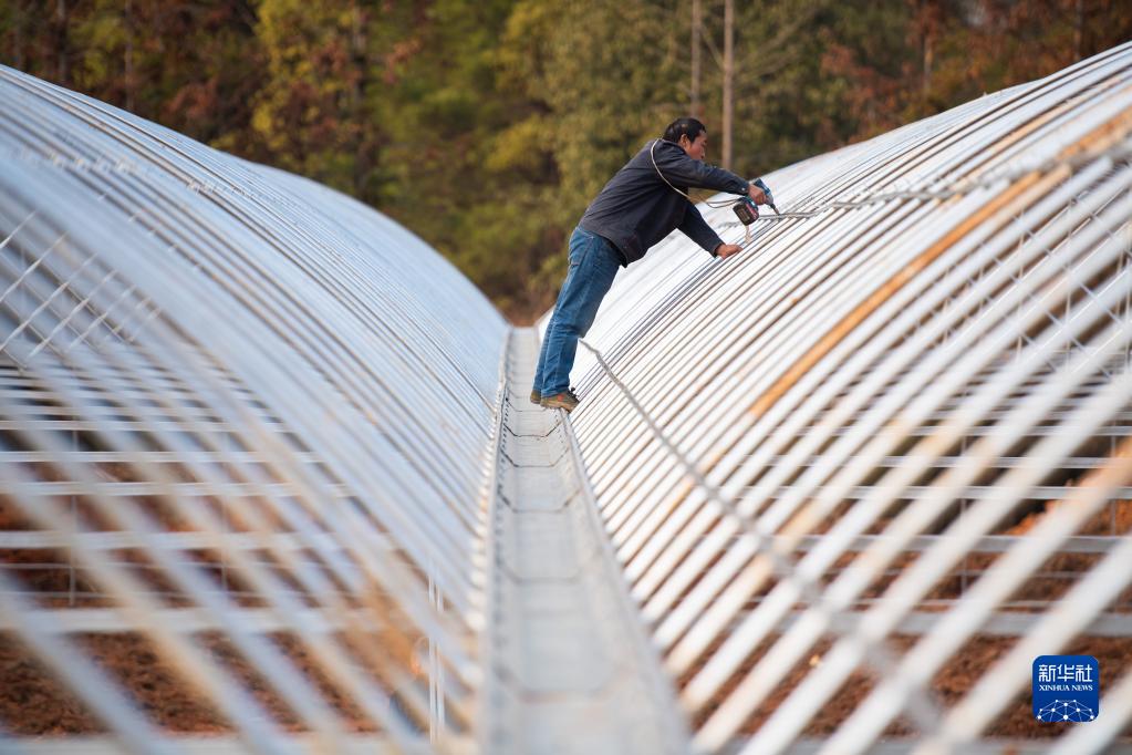 新華全媒+丨湖南醴陵:搶建育秧大棚備春耕