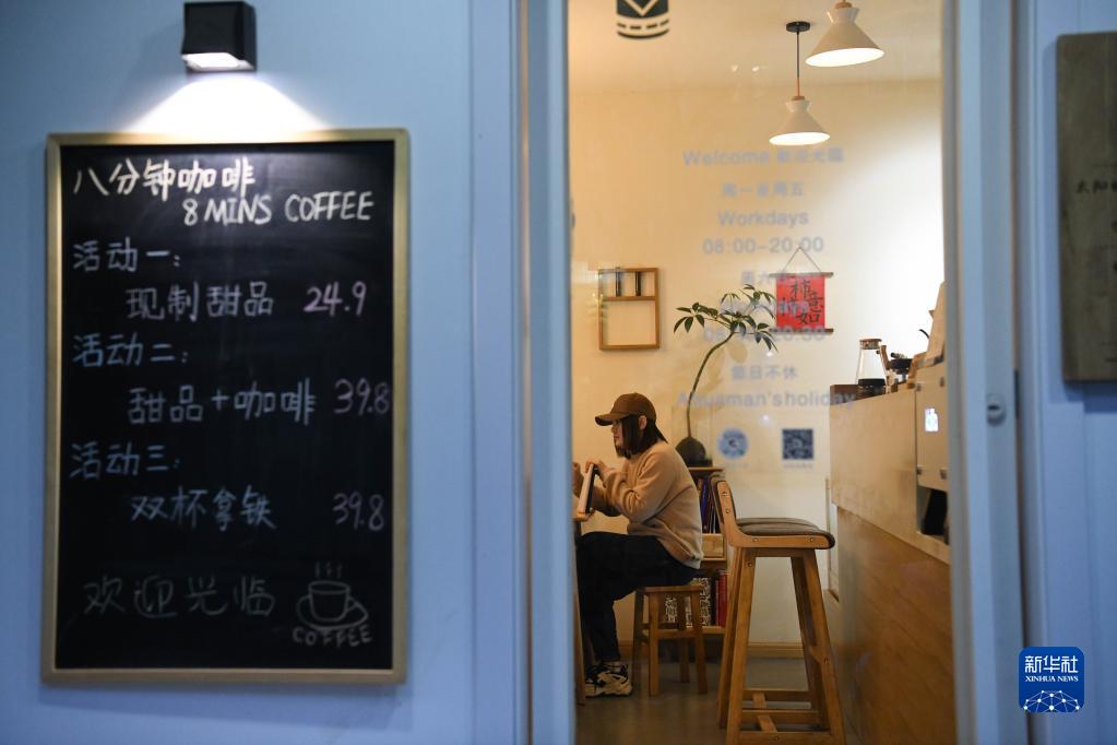 2022年9月,來(lái)自安徽省阜陽(yáng)市的“90后”楊倩與朋友合伙,在合肥市廬陽(yáng)區五河路邊開(kāi)了一家名叫“8分鐘”的咖啡店。