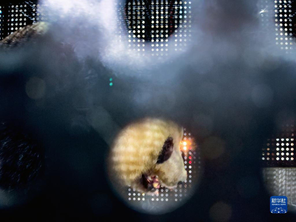 這是2月21日拍攝的順利抵達成都雙流國際機場(chǎng)的大熊貓“香香”(手機照片)。