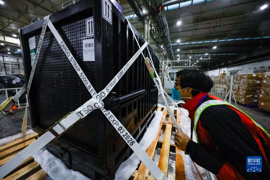 2月21日,大熊貓“香香”抵達成都雙流國際機場(chǎng)海關(guān)查驗區,中國大熊貓保護研究中心的獸醫在檢查其狀態(tài)。