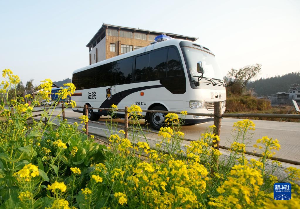 2月20日,巡回審判車(chē)行駛在柳州市融水苗族自治縣鄉村道路上。