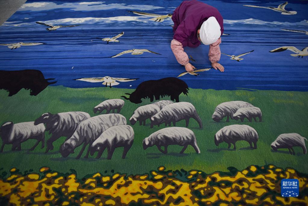 2月21日,在西寧市圣源地毯集團有限公司生產(chǎn)車(chē)間,操作工檢查毯面、拔花刺。