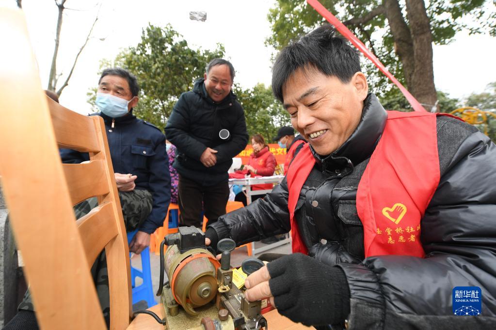 2月22日,浙江省湖州市,鎖匠劉壽濤在志愿服務(wù)站為群眾配鑰匙。