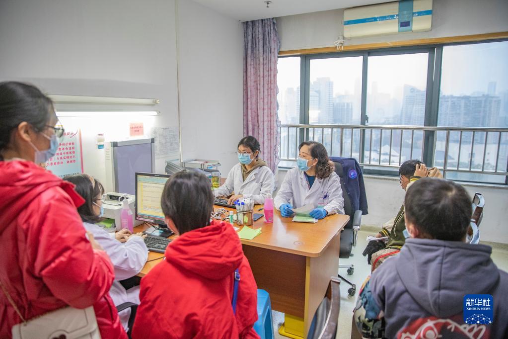 2月19日,李秋(中)在重慶醫科大學(xué)附屬兒童醫院渝中院區特需門(mén)診坐診。