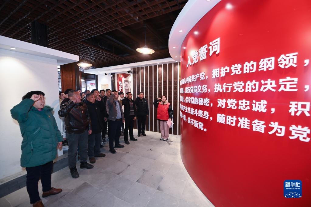 2月22日,板橋鎮的流動(dòng)黨員在臨安新四軍歷史紀念館重溫入黨誓詞。