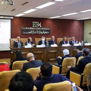 這是2月20日在埃及開(kāi)羅拍攝的中埃企業(yè)家研討會(huì )現場(chǎng)。