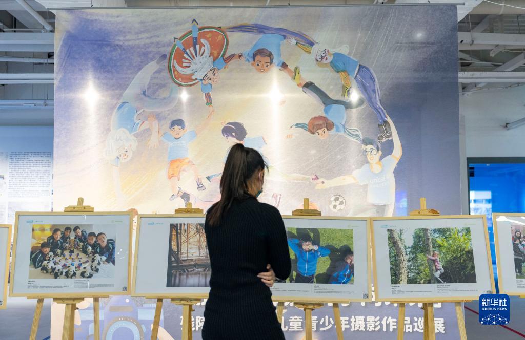2月22日,一名女子在“融合無(wú)障愛(ài)、攜手向未來(lái)”殘障融合主題兒童青少年攝影作品巡展上參觀(guān)。