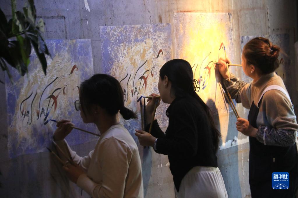 2月22日,在敦煌小鎮鳴沙書(shū)院,學(xué)員學(xué)習敦煌壁畫(huà)臨摹技藝。