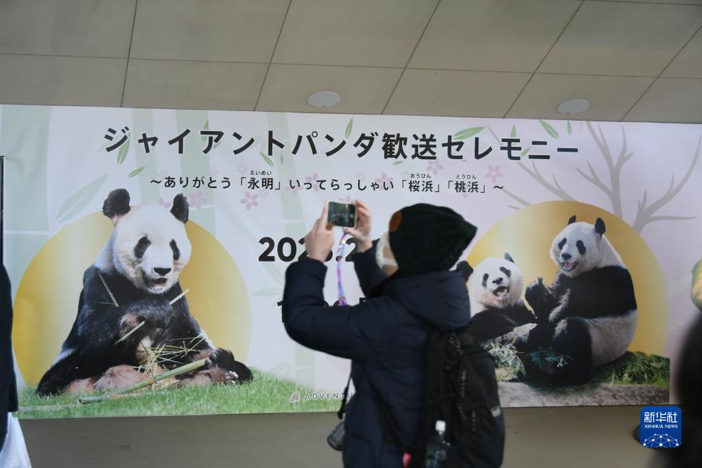 日本粉絲惜別大熊貓“永明”“櫻浜”和“桃浜”